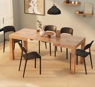 Mesa de comedor estilo rústico. - Acabado en madera natural. - Tablero amplio y extensible. 160 x 85 cm, ampliable de forma sencilla hasta 267x5 cm.
