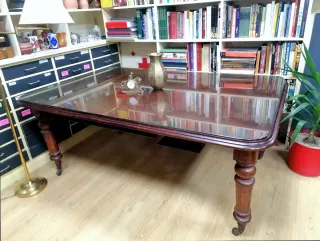 IMPORTANTE MESA de 6 - 8 plazas en AUTÉNTICA CAOBA (con certificado de compra) EXQUISITO DISEÑO, cristal templado retirable, MODELO ESPECIAL con 4 ruedas decorativas que la hacen más esbelta. 185 x 120 x 75alt, REBAJADA A MITAD DE PRECIO por no tener el panel para ampliar a 10 plazas (se puede conseguir). *Facilitamos su transporte profesional económico @antigüedades madera noble tropical ébano roble nogal ebanista lujo alta decoración estilo retro bohemio chic clásico rústico casa de campo