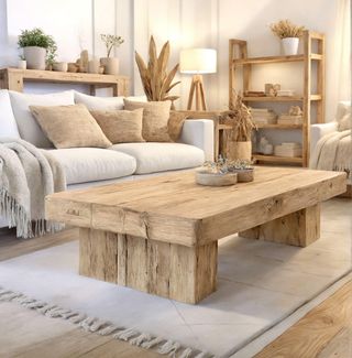 Mesa de centro rústica de madera maciza