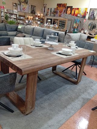 Mesa de comedor de estilo rústico, fabricada en madera maciza. Su diseño natural y robusto aporta calidez a cualquier espacio. - Disponible en 3 medidas: 200 cm, 250 cm y 300 cm. Tienda física en valencia MOVIL 656339149 LUISA CARDONA Hacemos envíos contra reembolso en valencia , Alicante y Barcelona. Estoy ubicada en la Calle 13 rosas, 17 QUAR DE POBLET pregunta por lusa cardona Contamos con financiación de 3 , 6 y 12