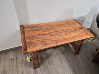 Mesa de centro con un diseño rústico y robusto. Su superficie de madera le da un toque cálido y natural a cualquier espacio. - Base de metal negro. - Estructura de madera maciza. Está en perfecto estado ya que apenas ha tenido uso.