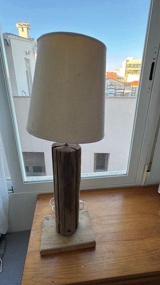 Lámpara de mesa rústica madera y tela