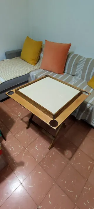 Mesa de dominó artesanal de madera