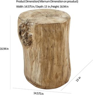 Mesa auxiliar con un diseño rústico que imita un tronco de árbol. Aporta un toque natural y orgánico a cualquier espacio. Es de hormigón ligero y comprada en amazon recientemente para una sesión de fotos - Material: Madera. - Tonos: Beige y marrón.