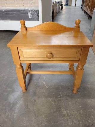 ✅ Ref. T51200 Mesita de noche de estilo rústico fabricada en madera de buena calidad y robusta. Se compone de una parte frontal con un cajón con tirador incorporado para abrirlo fácilmente. Es una mesita muy estable con cuatro patas unidas por finos listones de madera. Ideal para colocar en un dormitorio. Como podemos observar en las fotografías se encuentra en buenas condiciones. **Disponemos de 5 unidades y el precio es por unidad. 📐 Medidas (ancho x fondo x alto): 58x36x60cm. Financia tus compras de forma inmediata. Visita nuestra web Cardiffstore o nuestra tienda en Torrellano (C/La Magrana); Llámanos o envíanos un WhatsApp