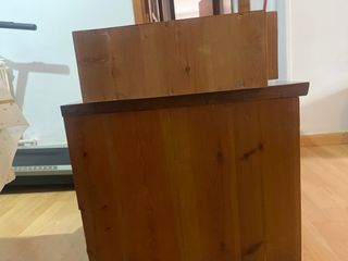 Mesilla de noche con un diseño rústico y acabado en madera. Se vende por reforma, apenas usado. Opcion de 2 colores de madera. 20€ unidad. Si te llevas las 2 = 35€ - Dos cajones con tiradores. - Patas robustas. - Medidas aproximadas. *Se puede llevar a Barbastro - Huesca o Zaragoza. Consultar.