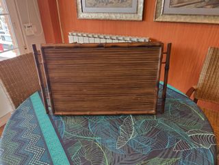 Mesa auxiliar de bambú, ideal para usar en la cama o como mesa auxiliar. - Fabricada en bambú y madera. -Con las patas extendidas 85 cm. - Diseño rústico y natural.