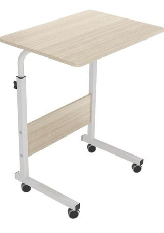 Mesa auxiliar versátil con altura ajustable y ruedas para fácil movilidad. Su diseño combina una superficie de madera con una estructura metálica. - Altura regulable. - Base con ruedas. - Superficie de madera con vetas. - Estructura de metal. B08NDX4RC3