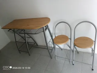 Mesa y 2 sillas metal y madera