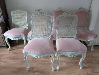 Conjunto de 6 sillas clásicas rosas y blancas