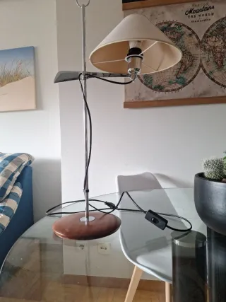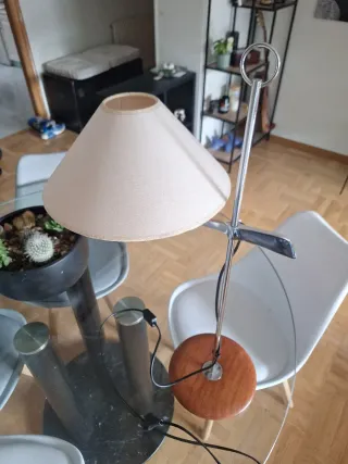 Lámpara de mesa de gran tamaño con un diseño elegante. No hago envios - Pantalla de tela beige. - Base de madera. - Estructura metálica.