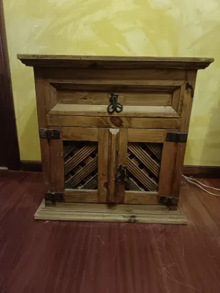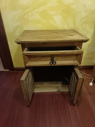 Se venden 2 mesillas de noche de estilo rústico en madera maciza de pino. Medidas aproximadas Tienen 3 cajones cada una, muy prácticas y resistentes. Ideales para dormitorio, casa rural o decoración rústica. Perfecto estado y tengo a la veta otras dos mesillas del mismo estilo, estantería y mueble a juego.