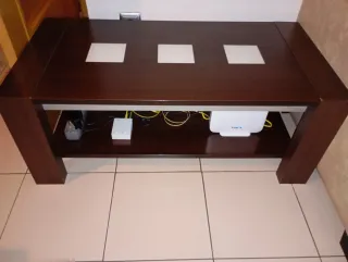 Vendo mesa de centro elevable de madera con ruedas, bastante usada y con marcas visibles, pero totalmente funcional. La tapa se eleva correctamente, ideal para comer, trabajar con el portátil o usar desde el sofá. Dispone de ruedas para moverla fácilmente, estante inferior para almacenamiento y detalles de cristal en la superficie. 🔹 Medidas: 100 cm largo x 50 cm ancho x 40 cm alto 🔹 Mecanismo elevable en funcionamiento 🔹 Ruedas operativas Precio ajustado al estado. Ideal como mesa auxiliar o para quien busque algo práctico y económico.
