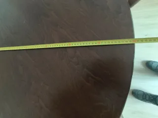 Mesa de comedor extensible. - Diseño redondo que se expande para mayor capacidad - Acabado en madera oscura - Opción de coger 6 sillas a conjunto - Solo mesa: 20€ ; con las 6 sillas: 40€ - Medidas: cerrada diámetro de 106cm; abierta 148cm el lado largo - A recoger en persona en Santander