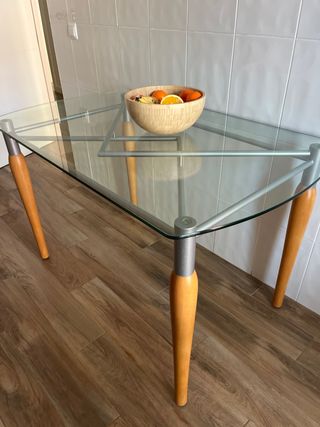 Mesa de cocina cristal y madera