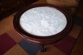 Mesa de madera con tapa de mármol