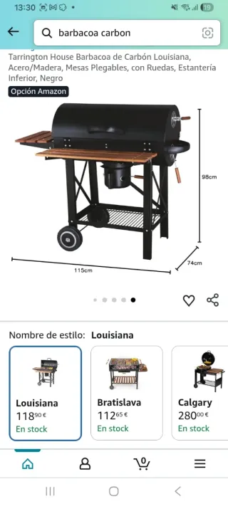 Barbacoa de carbón con un diseño robusto y práctico para tus asados. Comprada el verano pasado en Amazon por 229 euros y se usó 5 veces tan solo, nueva. Regalo accesorios, pastillas de encendido... - Acabado en color negro. - Incorpora mesas laterales de madera. - Base inferior de rejilla para almacenamiento. - Ruedas para facilitar su movilidad.