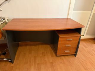 Escritorio de madera marrón con cajonera