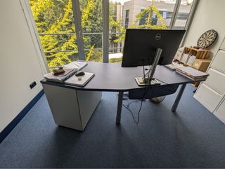 Vendo mesa de oficina IKEA BEKANT en forma de esquina (derecha), color madera clara con patas negras. Está como nueva, solo se ha utilizado 2 meses en una oficina. Sin golpes, sin rayaduras y en perfecto estado. ✔ Muy amplia y cómoda para trabajar ✔ Estructura metálica robusta ✔ Altura regulable ✔ Diseño moderno y profesional ✔ Ideal para despacho, teletrabajo u oficina Medidas: 160 × 110 cm Precio nueva en IKEA: 259 € Precio: 150 € Se puede ver sin compromiso.