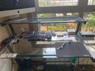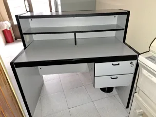 Mesa de escritorio con un diseño funcional y elegante.Casi Nueva - Superficie amplia para trabajar. - Estantes laterales para almacenamiento. - Bandeja extraíble para teclado. - Espacio para torre de PC sobremesa si desea - Estante inferior para impresora - Puede ir con ruedas o sin - Está casi nueva. Muy bien cuidada y embalada. - Se entrega desmontada y embalada para facilitar transporte.