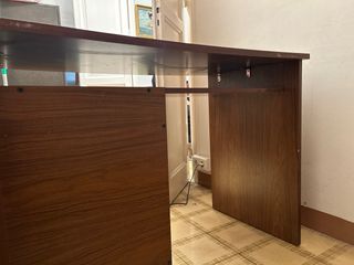 Elegante mesa de despacho con un acabado en madera oscura. Su diseño clásico la hace perfecta para cualquier oficina o estudio. Completamente nueva - Amplia superficie de trabajo. - Patas robustas para mayor estabilidad.