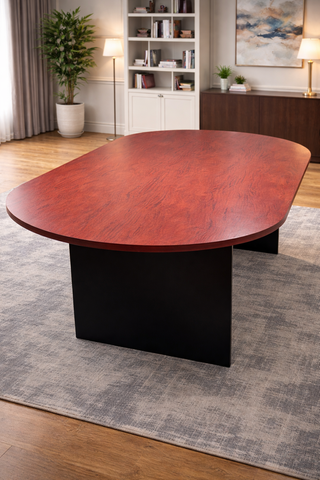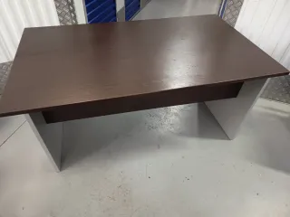 Elegante mesa de juntas con un diseño clásico y funcional. Perfecta para salas de reuniones. A juego con mesa con ala presidencia y 2 aparadores (estos no incluidos en el lote: 70€ c/u) - Acabado en tono oscuro. - Amplia superficie de trabajo.