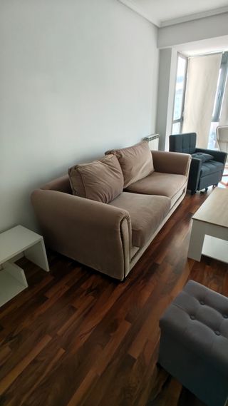 Conjunto de muebles, incluye: - Sofá de dos plazas en color beige. - Sillón Cama individual en color gris oscuro - Puf tapizado en gris. - Lampara de pie - Mesa de centro elevable - Silla mecedora blanca - Puff azul oscuro - Mesa revistero auxiliar - Escritorio de trabajo - Silla de trabajo Posibilidad de comprar por partes o lote completo. Tengo más fotos. Solo recogida en persona.