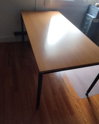 Mesa de despacho con superficie de madera y patas de metal. Patas Desmontables para poder almacenarla ocupando menos espacio. Por Dimensiones y Peso no se efectuan envios. Solo Recogida en domicilio. - Medidas: 160 cm de largo x 80 cm de ancho. - Diseño moderno y funcional.
