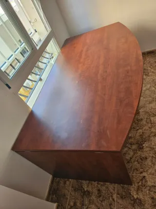 Se vende mesa escritorio grande de despacho, muy robusta y en muy buen estado. Ideal para teletrabajo, oficina en casa, estudio o despacho profesional. El tablero es muy amplio, perfecto para trabajar con ordenador, monitor grande o varios equipos. ✔ Muy estable y resistente ✔ Superficie amplia y cómoda para trabajar ✔ Color madera elegante que combina con cualquier espacio ✔ Estado muy bueno Precio: 65 € (negociable) Se vende por cambio de mobiliario / falta de espacio. Es una mesa grande, ideal para quien necesite mucho espacio de trabajo.