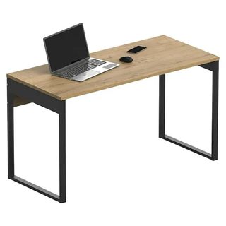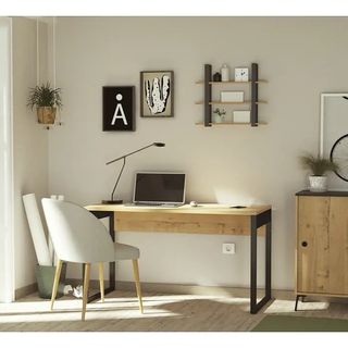 Mesa de despacho con un diseño moderno y funcional. Combina una superficie de madera con una estructura metálica robusta. Nuevo, se ha montado y no se ha usado. Se vende porque tenemos dos iguales 🥲 Precio original 139€. Tiene puertos USB para cargar. - Tablero con acabado imitación madera. - Patas de metal negro. - Con tablero de gran grosor - Fabricado en melamina de alta densidad Color Roble Gold/Negro Estilo Industrial Profundidad 60 cm Ancho 135 cm Altura 76 cm Largo 60 cm Peso (neto) 29,9 kg