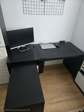 Mesa de estudio, oficina o despacho con un diseño moderno y funcional. - Estructura de metal resistente. - Superficie de plástico duradero. Tengo 2 disponible cada una por 50€