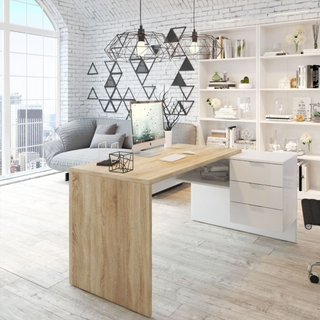 Mesa de despacho moderna blanca y madera
