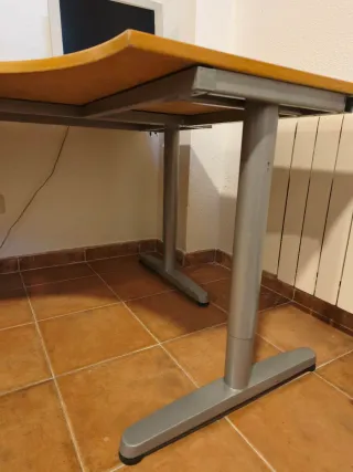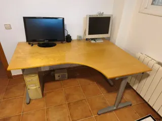 Escritorio de alta gama de Ikea con un amplio tablero. - Tablero de roble. - Estructura de metal. - Cajoneras integradas. Escritorio Ikea gama alta, grande. Tablero de roble, estructura de metal, cajonera lateral (2 cajones amplios) y soporte para teclado extraíble. Poco uso, prácticamente nuevo. El tablero es grande y muy estable. Estado impecable. Ideal para teletrabajo, despacho profesional, etc. Muy bien conservada. Medidas: 1,60 Largo 0,80 Ancho Altura ajustable.