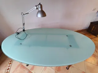 Mesa ovalada Ikea vidrio y acero.
