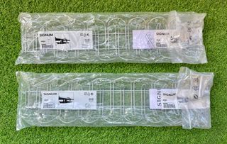 2 unidades - Organizador de cables SIGNUM de IKEA. Ideal para mantener tus cables ordenados y ocultos bajo la mesa o escritorio. Ideal para mantener el espacio limpio y ordenado. Perfecto para oficina o despacho en casa. - Unidades: 2 - Nuevos, sin abrir el envoltorio. - Material: Metal. - Color: Gris Plateado.