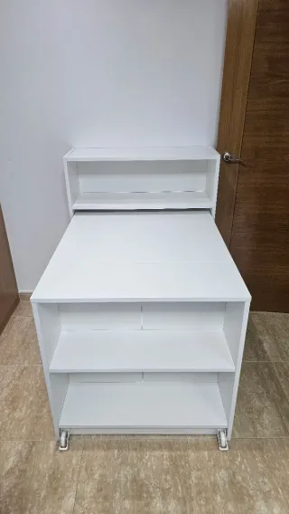 Caballetes blancos tipo escritorio – Modernos y funcionales Vendo pareja de caballetes blancos en muy buen estado. Diseño moderno en forma de “A”, ideales para crear un escritorio con una encimera a tu gusto o como soporte para baldas. ✔️ Color blanco✔️ Estables y resistentes✔️ Con baldas inferiores para almacenaje✔️ Muy poco uso✔️ Fáciles de transportar Perfectos para despacho, dormitorio o zona de estudio.Se venden juntos. Precio: 40 eur los dos Si te interesan, escríbeme 😊