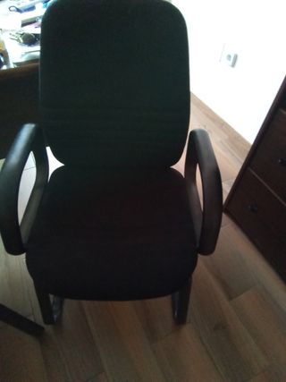 Despacho compuesto de mesa 200*90*75, sillón ejecutivo 70*60*125, mesa auxiliar ordenador 109*55*75, cajonera con cajón de carpetas colgantes y cajón normal 44*56*56, secreter para material 90*45*70, armario archivador con dos baldas y dos cajones de carpetas colgantes 90*45*130 y dos sillones de confidentes 60*55*98 Medidas correlativas a esta descripción