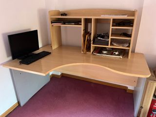 Escritorio de madera muy grande con estanteria