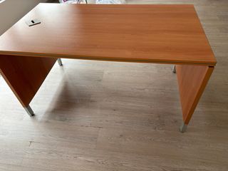 Mesa grande de escritorio o para despacho, pueden trabajar personas a la vez, con esconde cables para que esté bien recogido. Tiene algunas marcas del uso, pero está muy bien, cuerpo de madera y patas metálicas. Ahora está desmontada para su mejor traslado. Largo: 160 Fondo: 80 Alto: 70 aprox