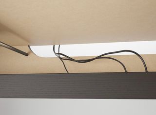Mesa esquinera despacho IKEA beige.