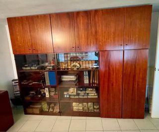 Despacho completo de oficina en muy buen estado, ideal para profesional o empresa. Incluye mesa de despacho, amplia ala lateral, armario archivador de 3 módulos con vitrina, cajoneras y dos sillas. Conjunto funcional, elegante y bien conservado, Mesa de despacho: 180 × 88 cm, ala lateral de 100 × 53 cm y cajonera de 220 × 43 cm. Armario archivador: 3 módulos, 86 cm de ancho, 40 cm de fondo y 207 cm de alto. Oportunidad para equipar una oficina completa con mobiliario de calidad a un excelente precio. También se vende por separado