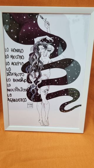 Preciosas ilustraciones digitales de una artista, listas para colgar. - Marco ligero blanco - Papel de alta calidad. - Diseños creados por la artista KORA-Lie Ilustración de @tuspalabrasmipincel en Instagram - Pocas impresiones de cada diseño - Tamaño A4 Tiene pata en la parte de detrás por si en vez de colgarlo quieres colocarlo en una mesa o mueble Perfecto para tu despacho, salón y para regalar a una amiga muy especial El precio es por 1, pregúntame antes de darle a comprar para comprobar disponibilidad Precio 1 x 30€, 2 unidades por 50€ #arte #Ilustración #ilustraciondigital #decoracióndiferente #arteenmarcado #prints