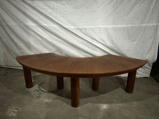 Mesa de diseño con forma curva, fabricada en madera maciza. Su estilo único la hace destacar. - Estructura robusta y duradera. - Acabado natural de la madera. - Patas macizas. ideal para despacho, consecionario o sitio amplio,