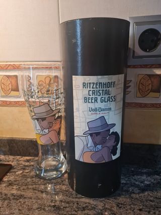 Copa de cerveza Voll-Damm colección especial Ritzenhoff. Diseño de Mariscal, basado en la película 'Chico y Rita' con ilustración de la pareja besándose. -Detalle de Doble Malta en la parte superior. -Base con el nombre MARISCAL. -Sin estrenar, en embalaje original y reposavasos -Medida Copa 23,5 cm. Caja 30,00 cm. jardín baño cocina urge regalo terraza escritorio habitación salón comedor recibidor casa piso loft despacho negocio restaurante decora decoración mueble mobiliario mesa navidad nadal reyes reis noel gratis biblioteca armario despatx comedor taula cubierto cubertería menaje navidad mantel cocina cuina menjador comedor men