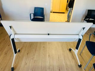 Vendo mesas abatibles con ruedas seminuevas (magnifico estado) y sillas para oficina, despacho, mesa de estudio, etc con las siguientes medidas: Alto 74cm.Ancho 67cm.largo 160cm. 1 mesa+2 sillas 100€ (zona de Barcelona y alrededores)
