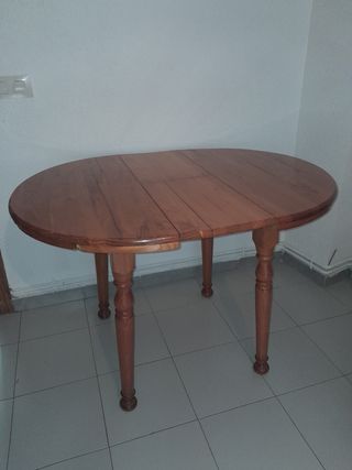 Preciosa mesa de comedor de madera maziza, ideal para cualquier hogar, parcela o casa de pueblo. Se encuentra en buen estado. - Extensible para mayor capacidad (cerrada 4 comensales y abierta 8/10 comensales). - Acabado brillante y elegante. - Perfecta para cenas familiares o reuniones con amigos. Se vende por poco uso.