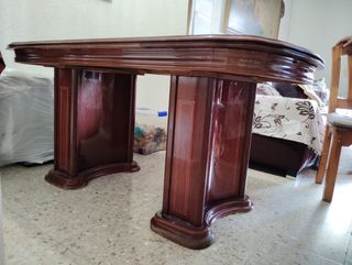 Preciosa mesa de comedor de madera maciza, ideal para grandes reuniones. Se encuentra en muy buen estado, lista para usar. - Extensible para mayor capacidad. - Acabado brillante y pulido. - Diseño clásico y elegante.