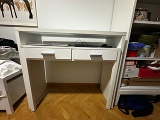 Mesa de escritorio moderna y funcional, ideal para tu espacio de trabajo o estudio. Su diseño limpio y minimalista se adapta a cualquier decoración. - Acabado en blanco. - Superficie espaciosa para ordenador y accesorios. - Dos cajones integrados para almacenamiento adicional. - Extensible.