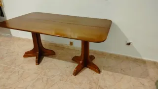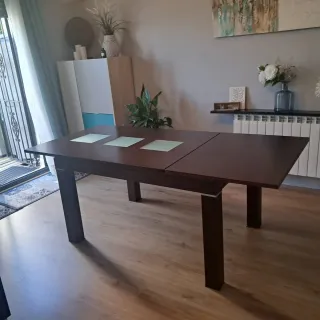 Mesa de madera para comedor. Es extensible (llega hasta 190 cm). Está en buen estado, unicamente tiene pequeños arañazos en las esquinas.