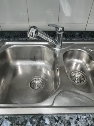 Grifo de cocina con función extraíble. Su diseño moderno se adapta a cualquier estilo de cocina. No se envía por correo, recoger en mano en Badajoz ciudad. Perfecto estado y funcionamiento. Usado apenas unos 4 meses. - Cromado. - Manguera extensible para mayor comodidad.